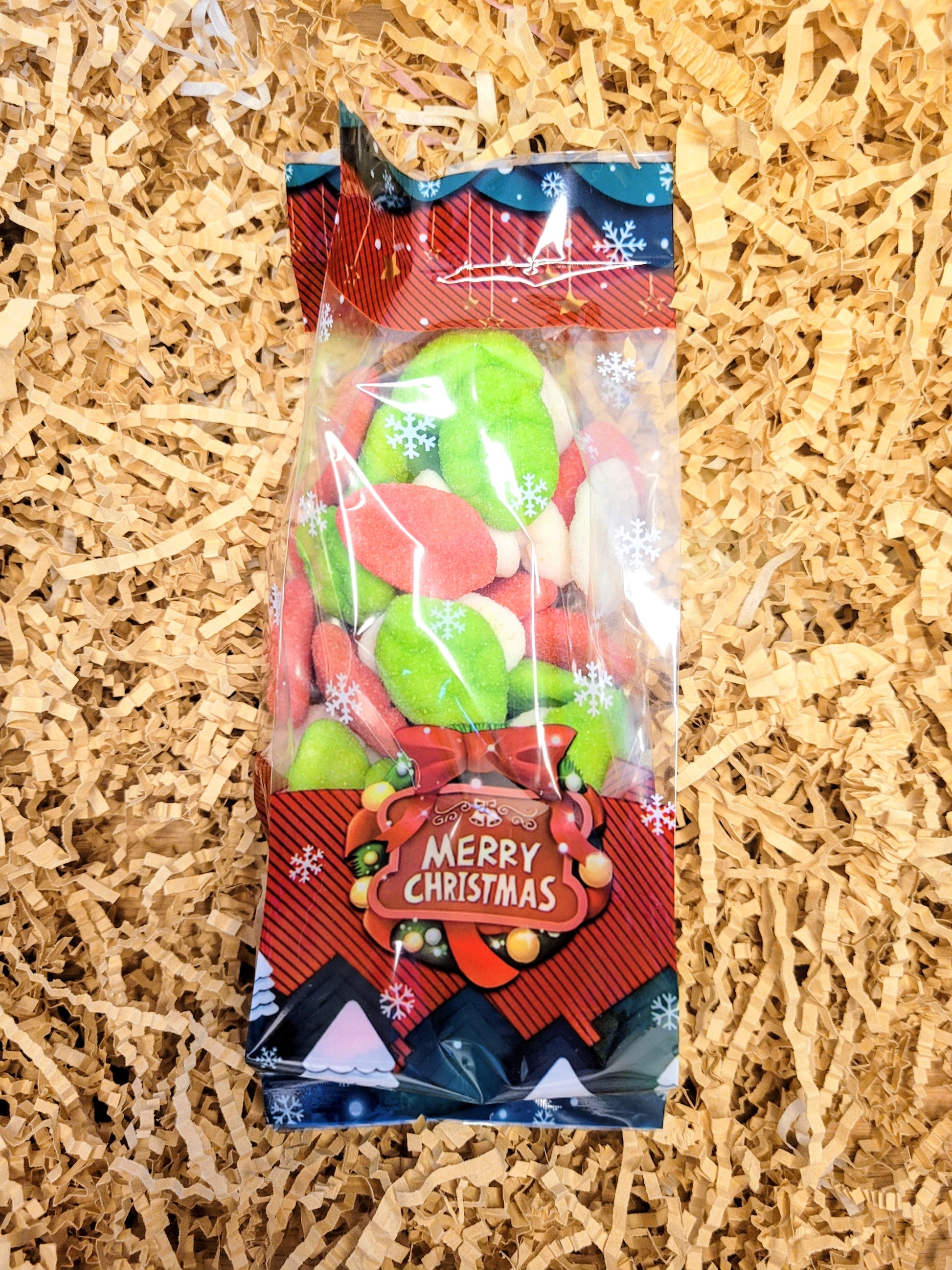 Xmas Cloud Bags filled with a mix ofĀ White (Pineapple) Clouds, Red (Strawberry) Clouds andĀ Green (Watermelon) Clouds.